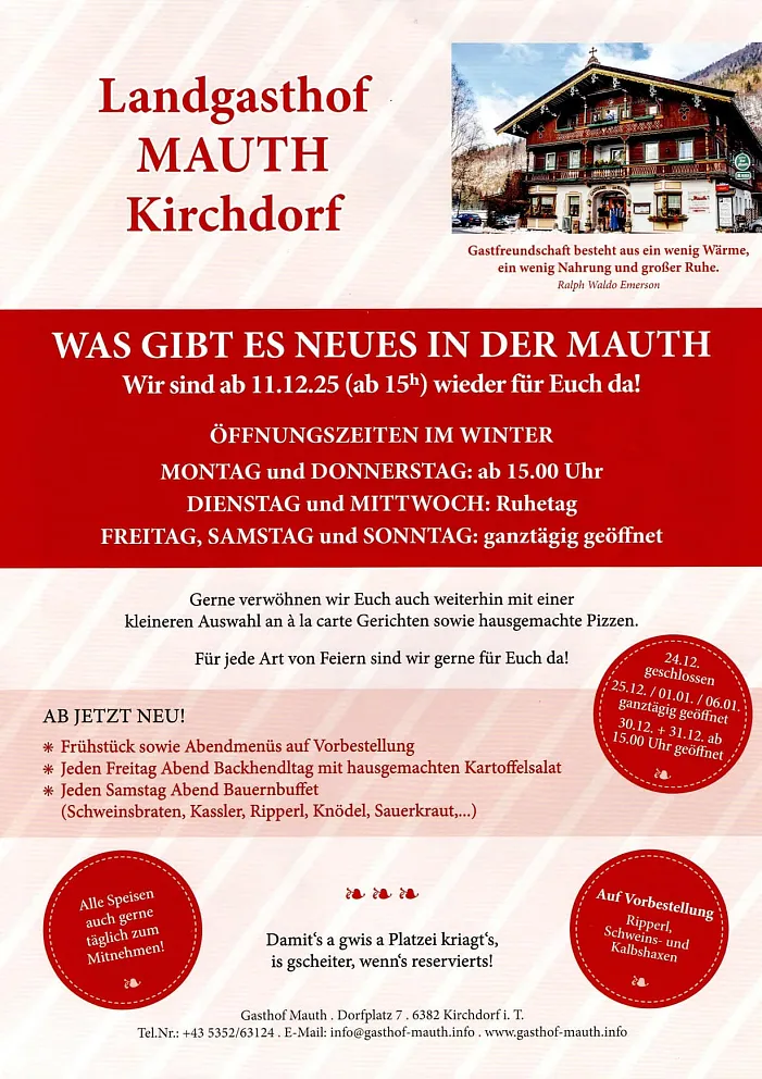 Herzlich Willkommen im Landgasthof Mauth in Kirchdorf!