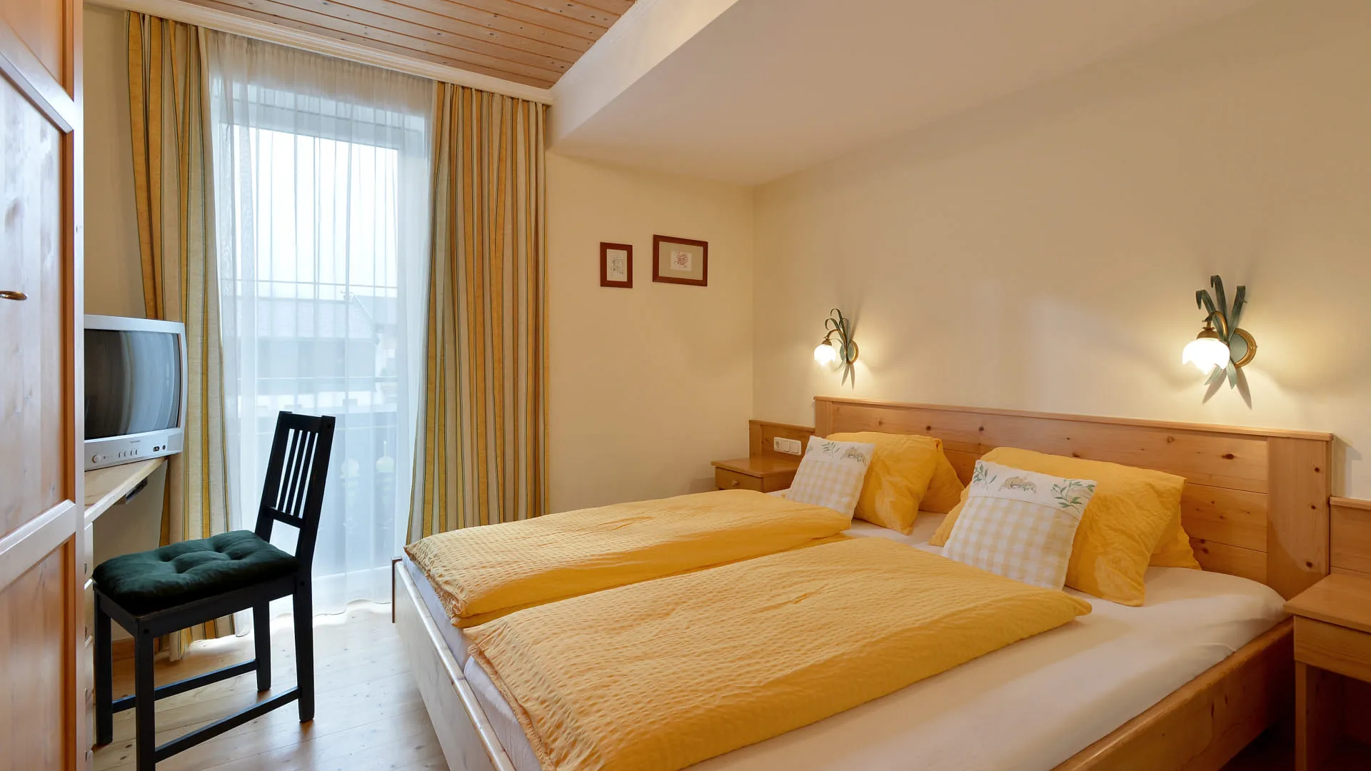 Die großzügigen Doppelzimmer Landhaus im traditionellen Tiroler Stil bieten auf 21 m² viel Raum für Ihre Träume und einen großartigen Blick vom Balkon.